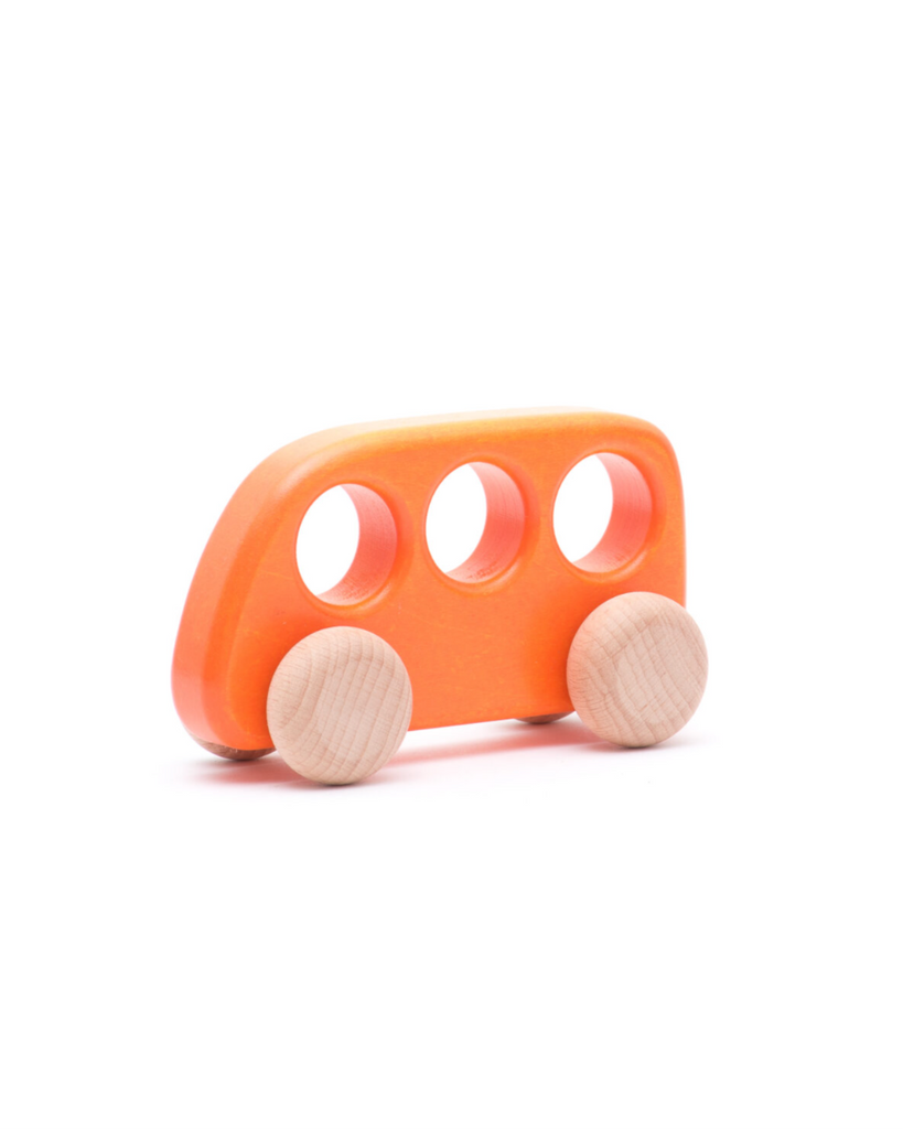 Young motoring fans will love to take this Bajo bus for a drive, the perfect size to fit in small hands. Made from sustainable natural beech and sycamore, brightly coloured with non-toxic paint, leaving the wheels natural to show off the beautiful wood grain. Smooth and tactile, this bus is so inviting to hold and play. A lovely open ended toy that toddlers will love to push and pull across the floor. Say "broom broom" and watch them go. This classic toy will be a hit with vehicle-mad tots.