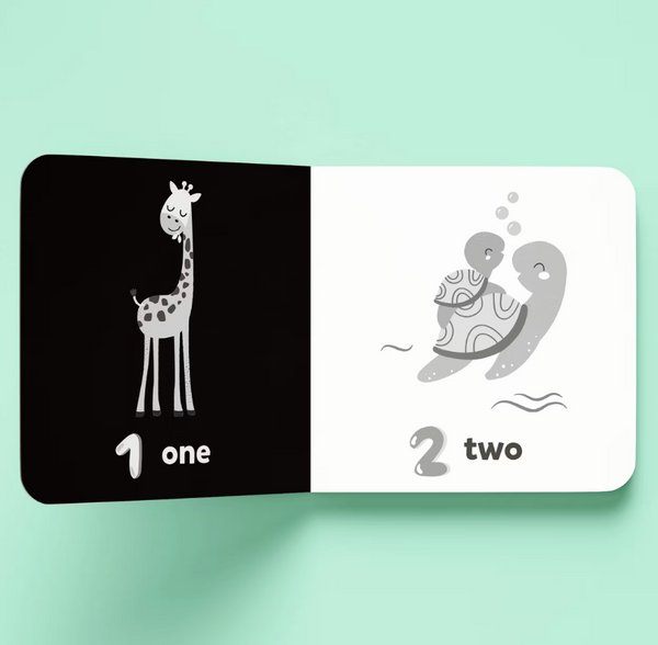 - Little ones will love learning their numbers in this sweet black-and-white board book