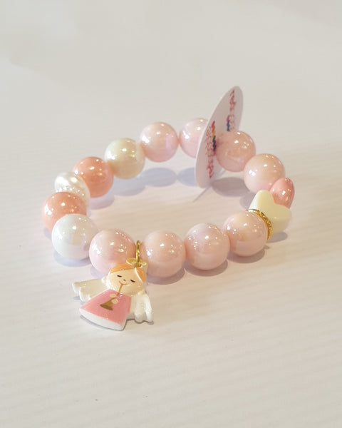 Created with stretchy elastic and every hue of pink, this bracelet is super easy to pull on and off over your mini's wrist.