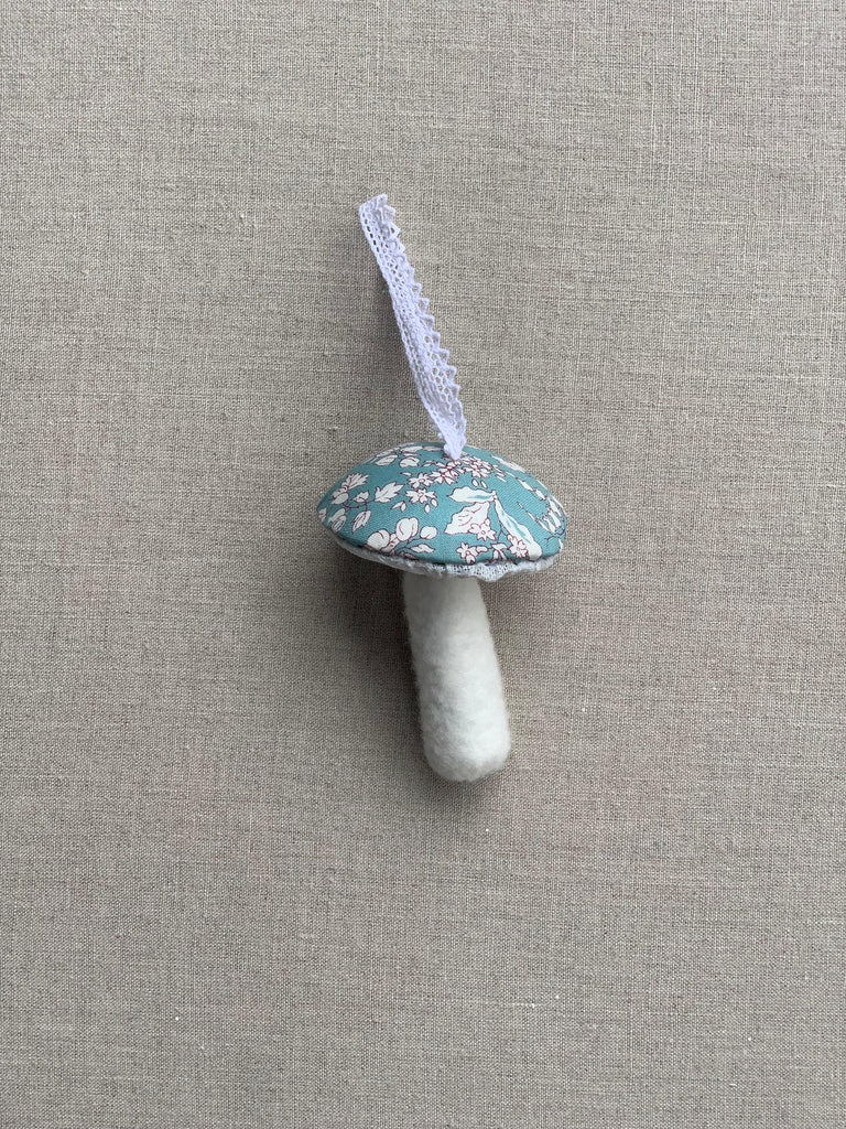 A sweet fabric mushroom made of a genuine Liberty top and felt stalk. Adorn your tree or decorate your home. Includes lace string to hang.