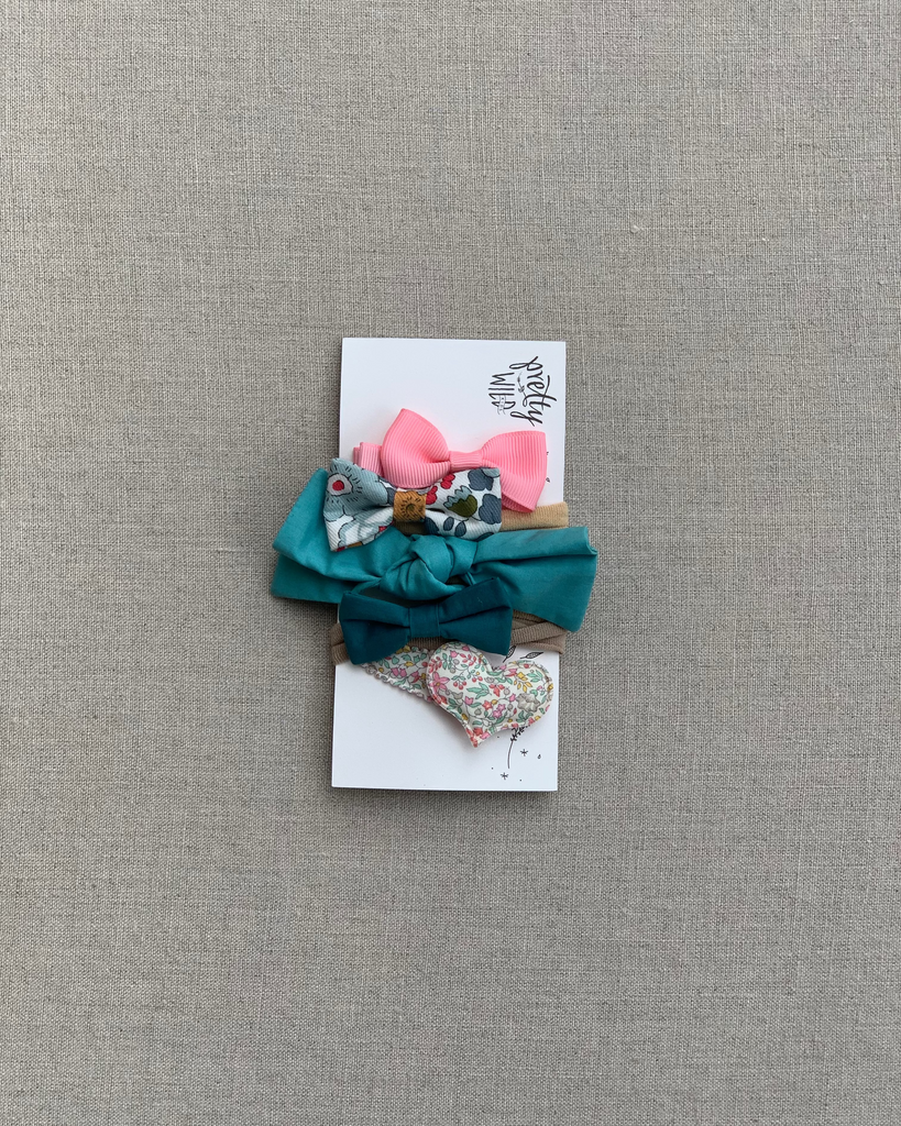 A five piece hair set to get your little one accessorised! We have selected some of our favourite Pretty Wild Kids accessories to create this great little set. Great for gifting and everyday wear alike.