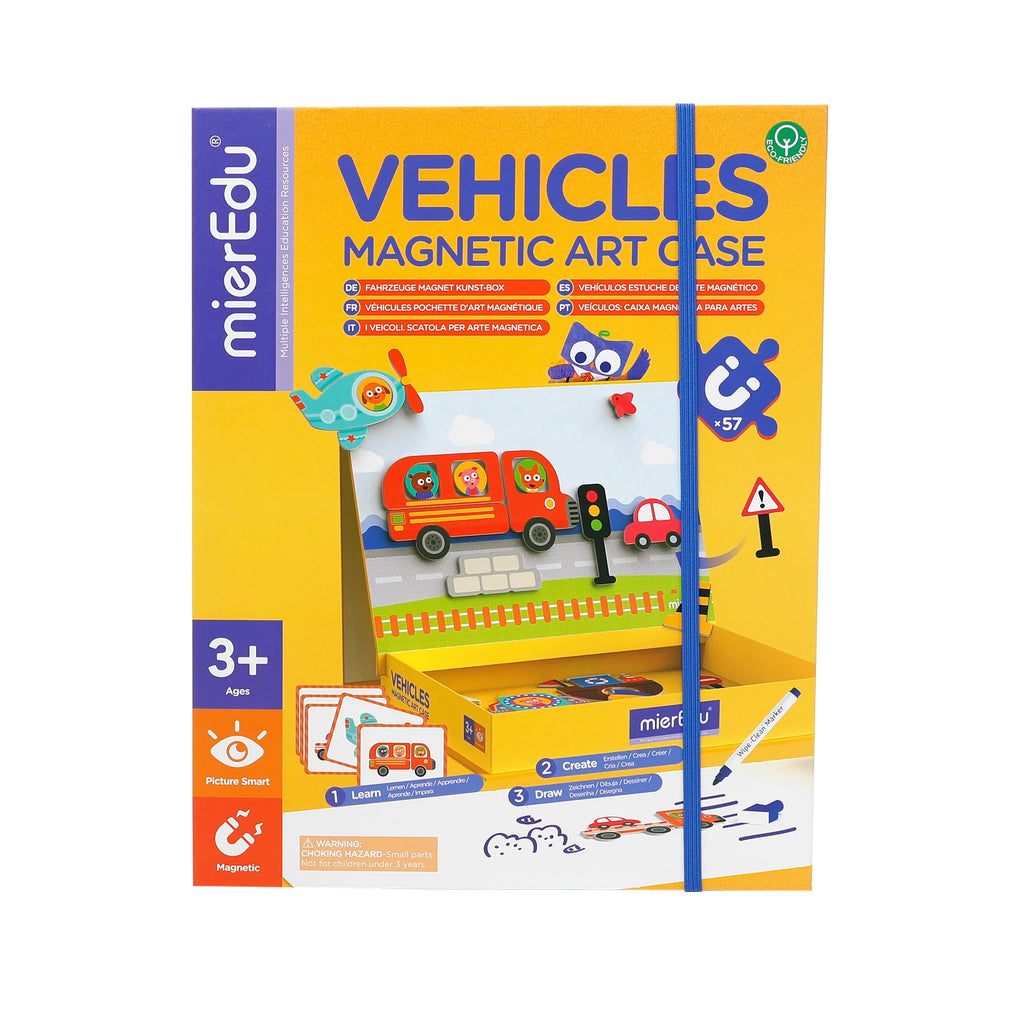 These educational magnetic puzzle games are easy to carry and fun for play on the go. With the help of magnets, kids can create their own stories and images on the board, bringing their imagination to life. Composed of 50 - 70 magnets, 8-15 cards, and 1 wipe-clean marker, this case is conveniently packed in a handy way and easy to carry around. Once the case is opened, it can be transformed into a large wipe-clean drawing board, allowing kids to draw and create their own stories. Magnetic art case games are perfect for developing creativity, drawing, and fine motor skills.